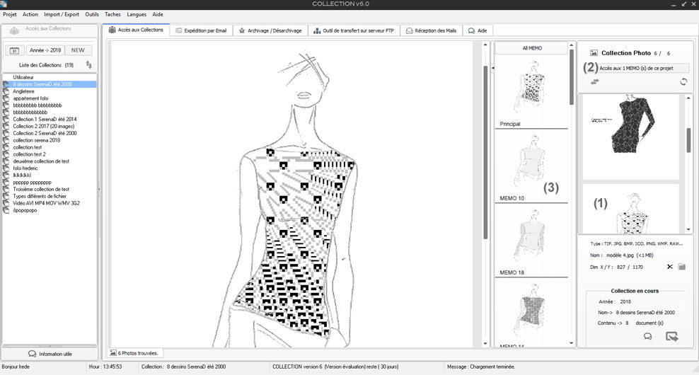 Selection of a collection, 8 SerenaD designs summer 2000 (in the example above)