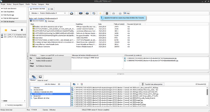 In the Perspective COLLECTION tool, a function allows the sending and receiving of documents (all types) with a large shipping volume.