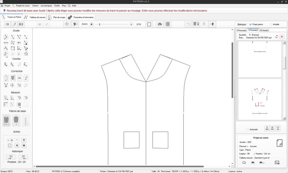 PATRON v2 : L'interface principal de l'outil de création de patron (à plat ou par importation de dessin au format A4).